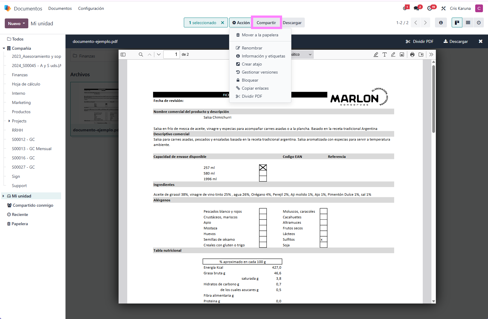 - Subimos el documento en el módulo de "documentos":