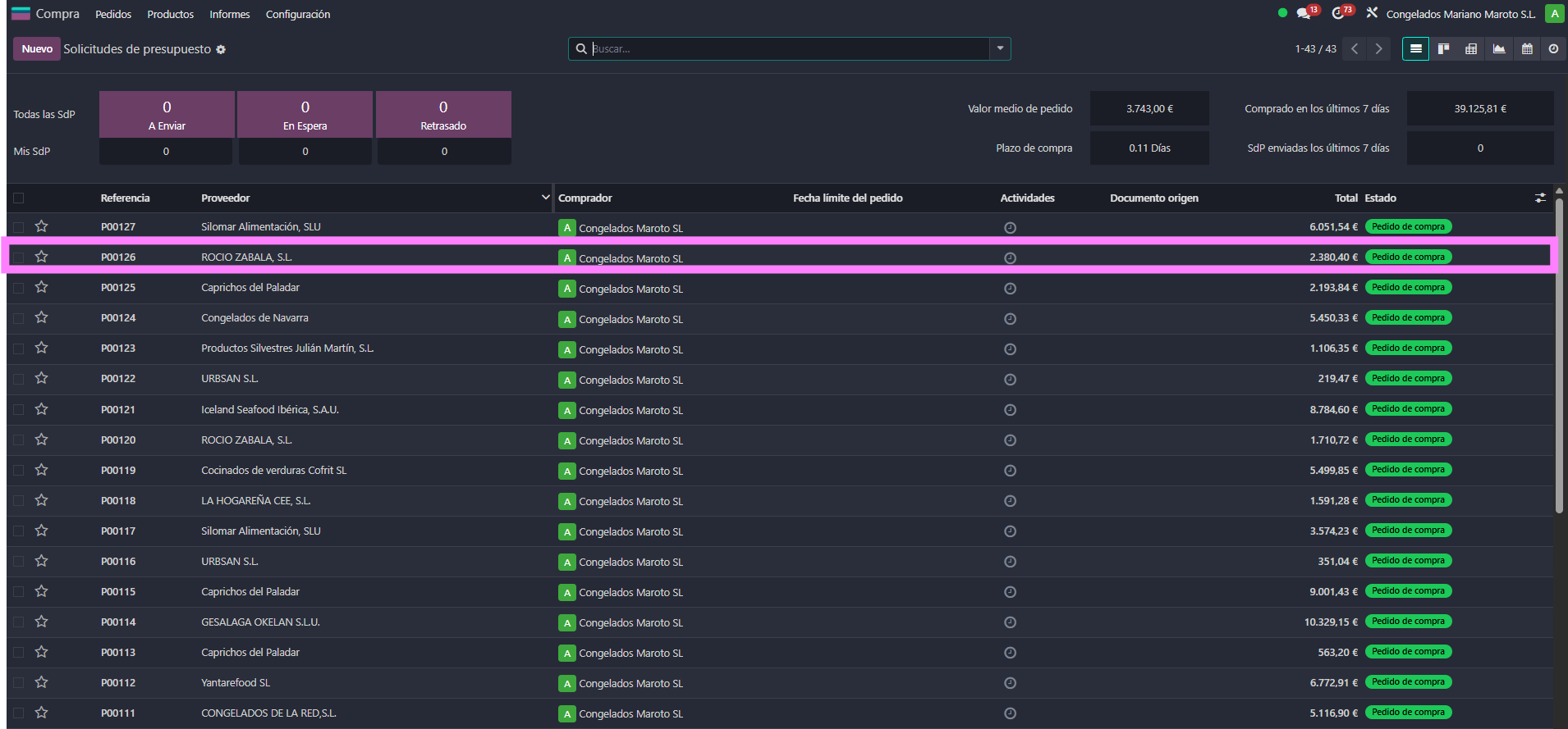 - Ir a Compras > Pedidos de compra.