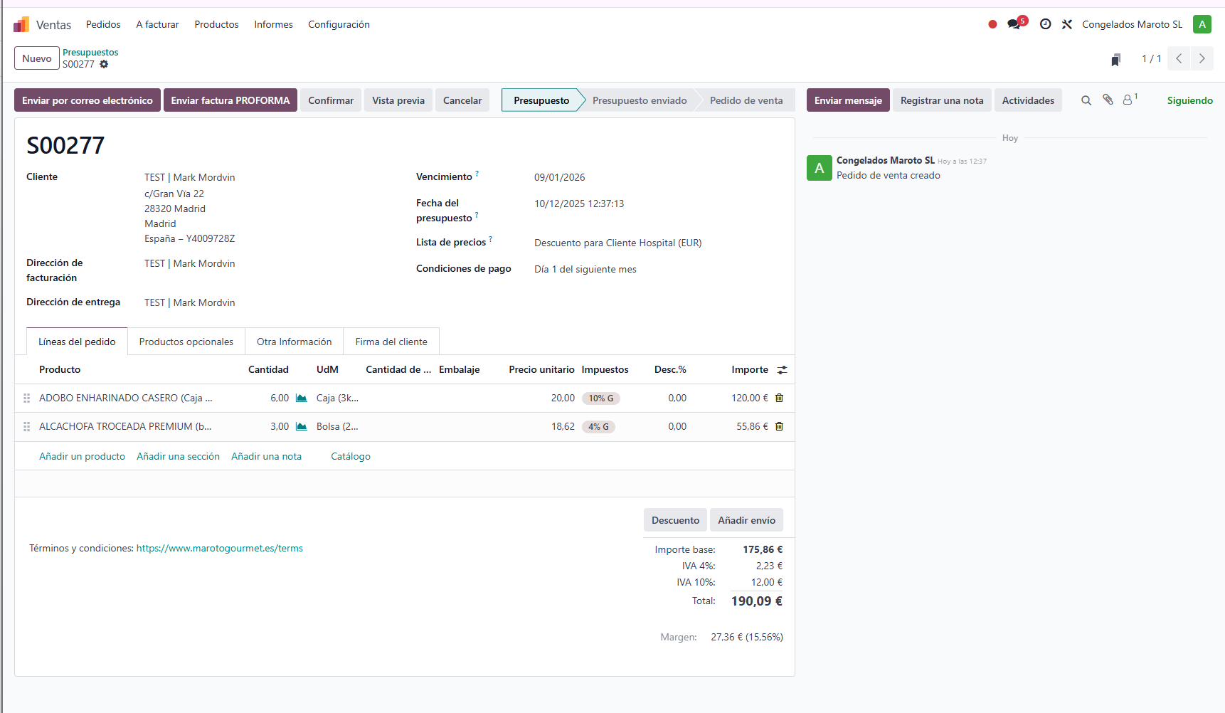 Ahora podemos volver al pedido de venta pulsando en el número arriba a la izquierda: