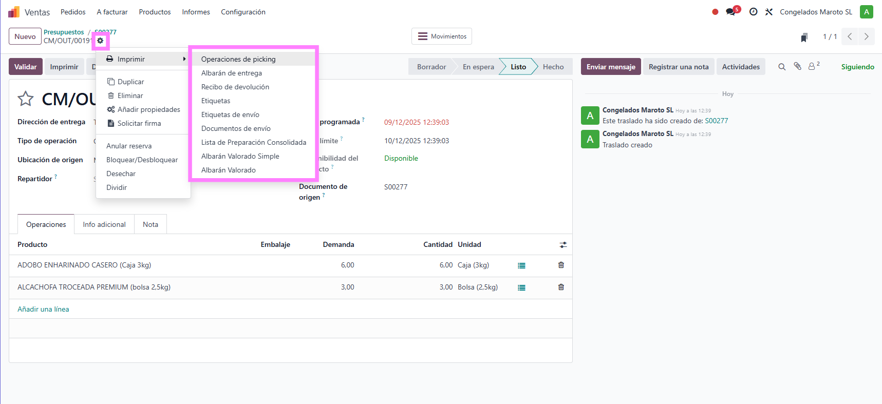 Paso 3.3: Documentación Para generar la documentación fÃsica (Albarán de entrega o Vale de entrega) para el transportista o el cliente: