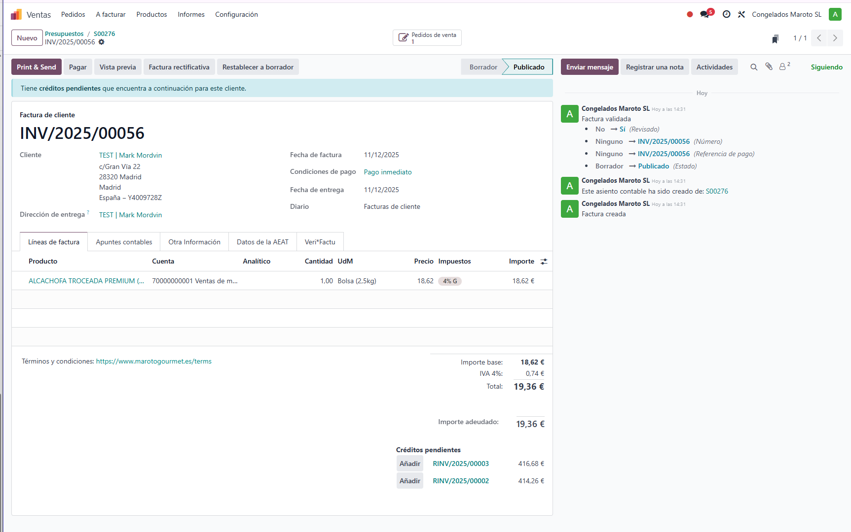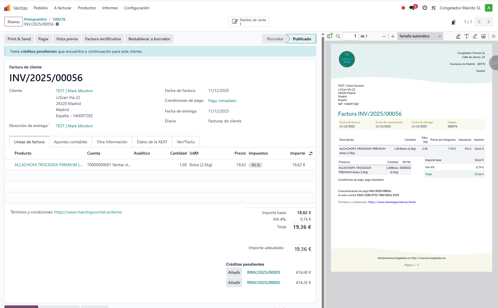 En Congelados Maroto tenemos dos formas de trabajar dependiendo de si el cliente paga al momento (repartidor) o si tiene crédito (paga a fin de mes/remesa).