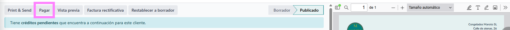 Al tener la condición "Pago Inmediato", verás el botón Crear Factura. Púlsalo.