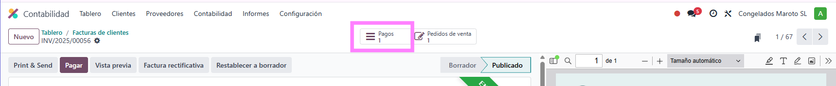 Una vez creadas las facturas, solo registraremos el pago manual en las que ya se han cobrado (las del Caso A).