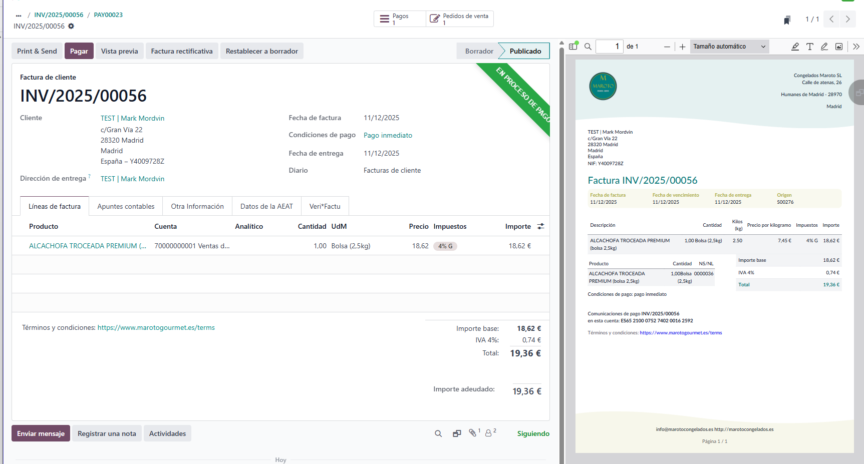 Para los clientes que pagan al contado, tarjeta o transferencia inmediata, generamos la factura uno a uno desde el propio pedido.