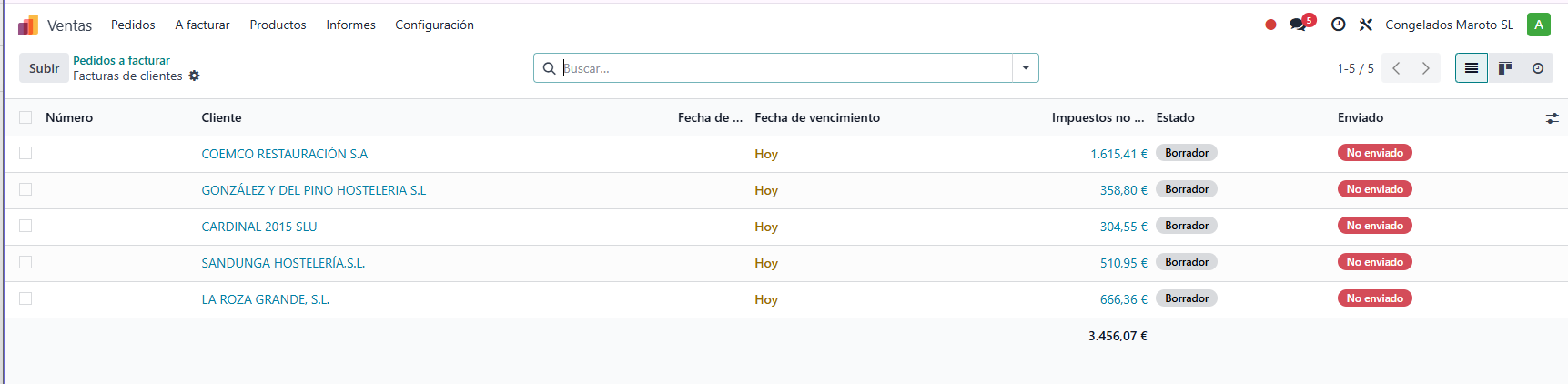 Odoo generará todas las facturas de golpe y las dejará en estado "Borrador" para que las revises y confirmes.