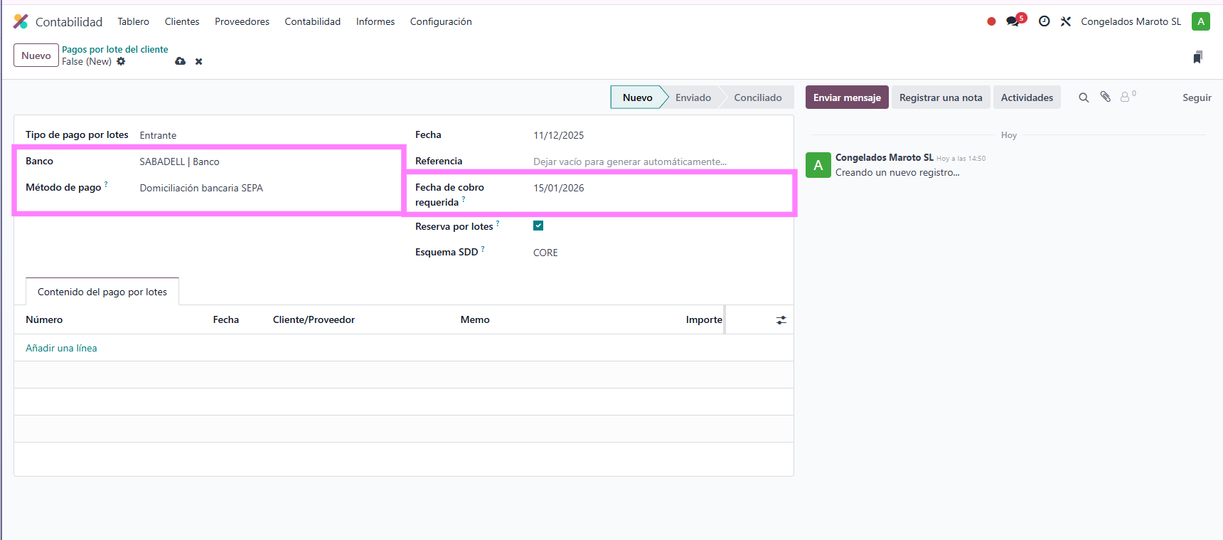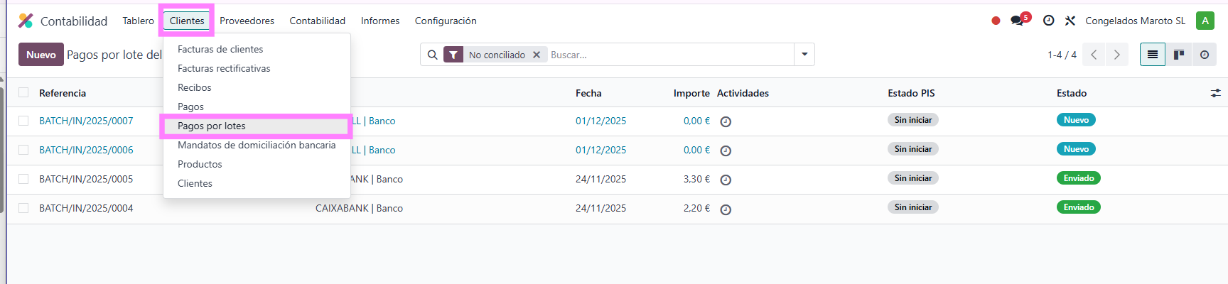 Ruta: Contabilidad > Clientes > Pagos por lotes.